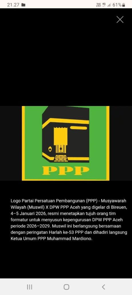Muswil X DPW PPP Aceh yang dilaksanakan pada awal Januari 2026 menjadi momentum penting dalam perjalanan organisasi PPP di Aceh. Muswil ini tidak hanya menjadi forum konsolidasi internal, tetapi juga memiliki nilai simbolik karena diselenggarakan bertepatan dengan peringatan Hari Lahir ke-53 PPP.
