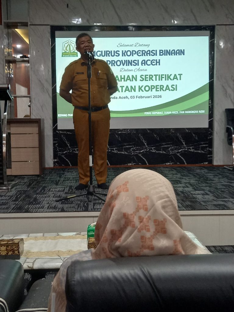 Kegiatan penyerahan Sertifikat Kesehatan Koperasi Binaan Provinsi Aceh pada tanggal 3 Februari 2026 menjadi momentum penting dalam memperkuat komitmen bersama antara pemerintah dan koperasi dalam membangun koperasi yang sehat, profesional, dan berorientasi pada kesejahteraan anggota.